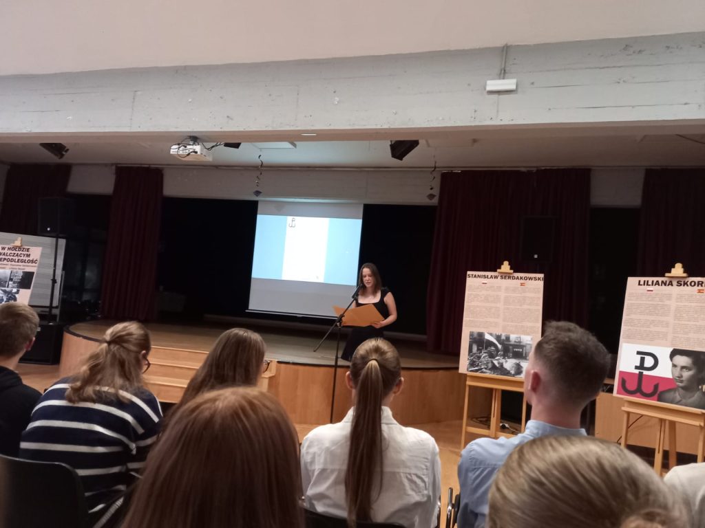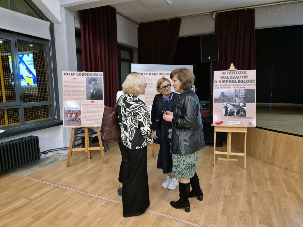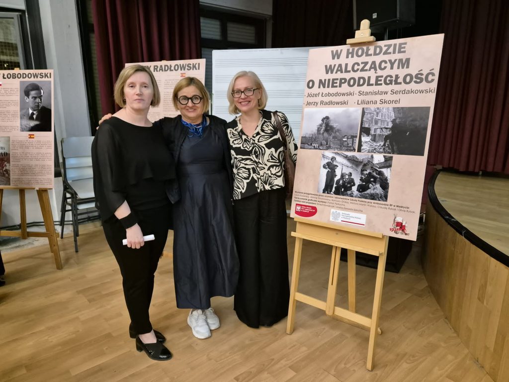 18 października 2024 r. w naszej szkole odbyła się wyjątkowa uroczystość. W obecności licznie zebranych gości podsumowaliśmy międzyszkolny projekt poświęcony działaczom podziemia niepodległościowego i uczestnikom Powstania Warszawskiego, którzy związali swoje losy z Hiszpanią: Lilianie Skorel, Józefowi Łobodowskiemu Jerzemu Radłowskiemu i Stanisławowi Serdakowskiemu. Dla społeczności szkolnej i środowiska polonijnego było to bardzo ważne wydarzenie, ponieważ prezentowane sylwetki bohaterów II wojny światowej są symbolem odwagi i niezłomności w walce o wolność. Wystawa była częścią projektu, który zrealizowany został we współpracy z warszawskim XIX Liceum im. Powstańców Warszawy. Wystawa powstała dzięki wsparciu Ambasady RP w Madrycie i pod patronatem stowarzyszenia Poland First to Fight. W przygotowanie wystawy zaangażowani byli uczniowie i absolwenci naszej szkoły: Laura Bukielska, Bartosz Grab, Lilianna Grzybowska, Wiktor Martin Walas, Patryk Pietrucha, Claudia Rybak i Olivia Rybak. Uczniowie z Warszawy, którzy wraz z nauczycielkami licznie przybyli na uroczystość, zaprezentowali obraz okupowanej stolicy widziany oczami hiszpańskiego dyplomaty Casimiro Granzowa de la Cerda, opracowany na podstawie książki pt. „Dramat Warszawy 1939-1944”. Swoją obecnością zaszczyciła nas Pani Konsul Patrycja Domejko-Kozera, prof. Grzegorz Bąk z Uniwersytetu Complutense, przedstawiciele stowarzyszeń polonijnych oraz uczniowie szkół polonijnych. Nad realizacją projektu czuwali nauczyciele naszej szkoły: Ernest Kowalczyk oraz Aneta Zawada-Sancha. Dzięki współpracy i zaangażowaniu wielu osób udało nam się stworzyć ciekawą inicjatywę edukacyjną, a zgromadzone i zaprezentowane materiały pozwolą zachować pamięć o bohaterskiej postawie i odwadze Polaków walczących o niepodległość. Specjalne podziękowanie dla Pana Alberta Trujillo, oraz stowarzyszenia Poland first to fight.